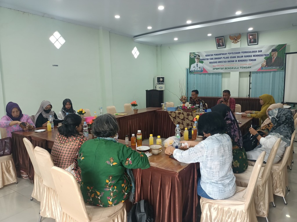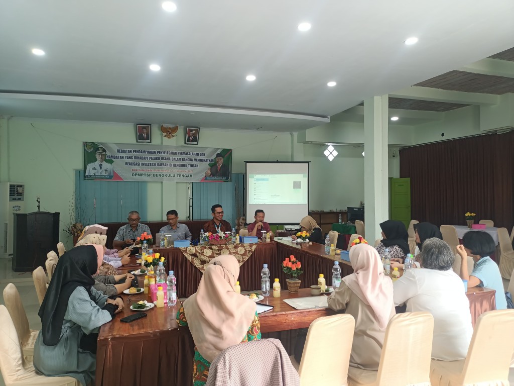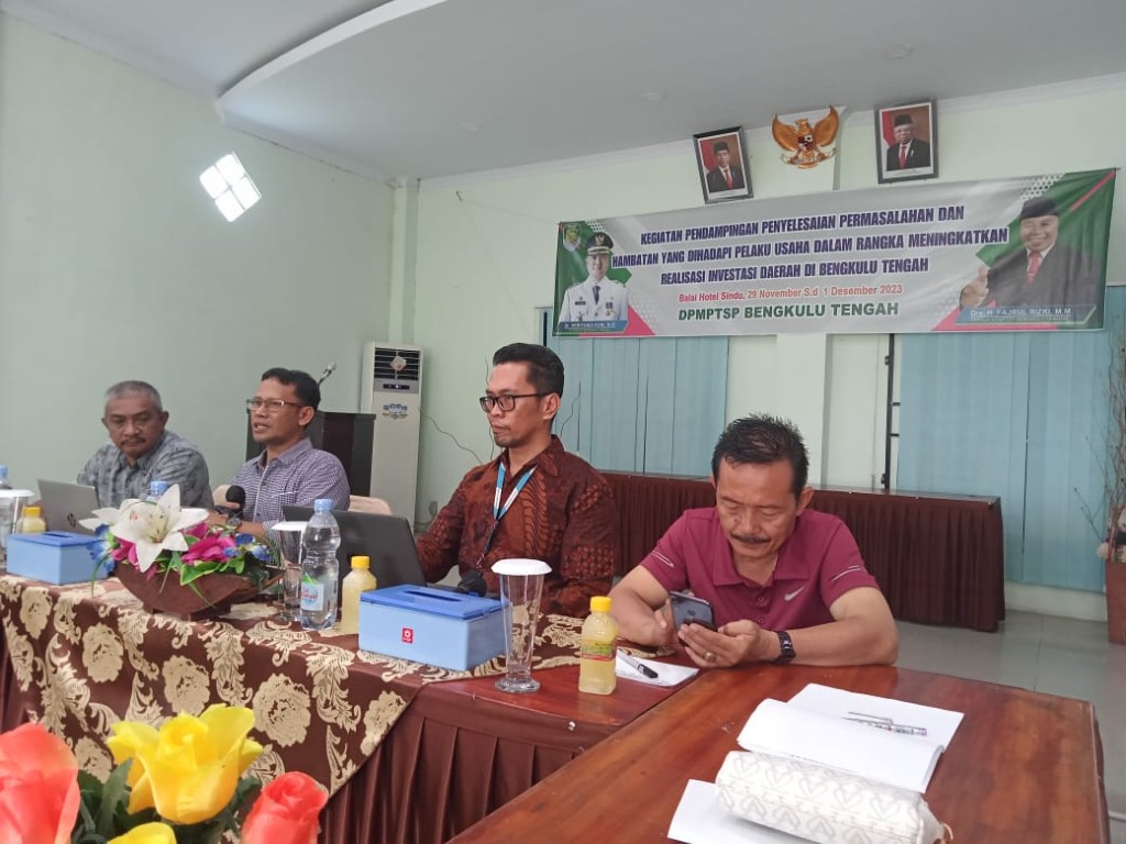 Bengkulu Tengah- Dinas Penanaman Modal dan Pelayanan Terpadu Satu Pintu Kabupaten Bengkulu Tengah menyelenggarakan Kegiatan Pendampingan Penyelesaian Permasalan Dan Hambatan Yang Dihadapi Pelaku Usaha Dalam Rangka Meningkatkan Realisasi Investasi Daerah Di Bengkulu Tengah yang dilaksanakan selama 3 hari (29-30 November 2023 & 01 Desember 2023) yang bertempat di Balai Hotel Sindu Kab. Bengkulu Tengah. Kegiatan ini dalam rangka fasilitasi mediasi penyelesaian permasalahan dan hambatan yang dihadapi para pelaku usaha dalam rangka meningkatakan realisasi investasi daerah di Kabupaten Bengkulu Tengah.